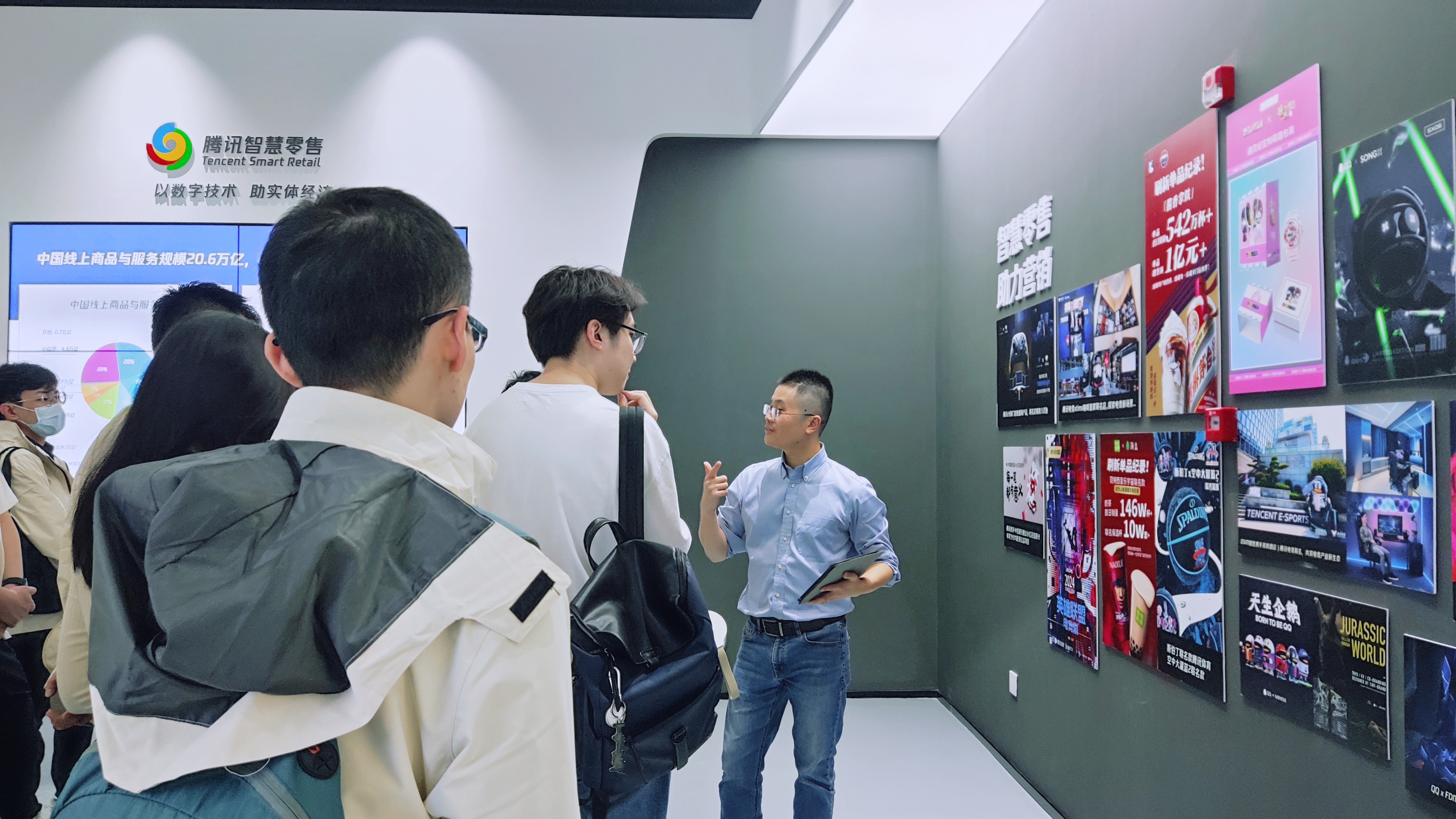 在技术赋能厅,学生们亲自体验了智能家居产品接入“腾讯连连”小程序所带来的便捷性。而在连廊和零售厅,则了解了智慧建筑打造的腾讯微瓴系统、智慧文旅等前沿智造技术与成果。