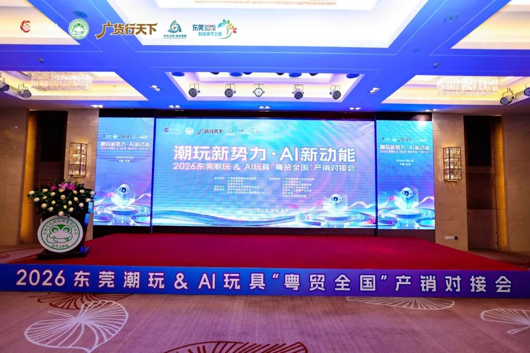 3 月 12 日,由东莞市玩具和婴童用品协会主办,中国玩具和婴童用品协会、东莞市商务局、东莞市贸促会指导的2026 东莞潮玩&AI 玩具 “粤贸全国” 产销对接会圆满举行。